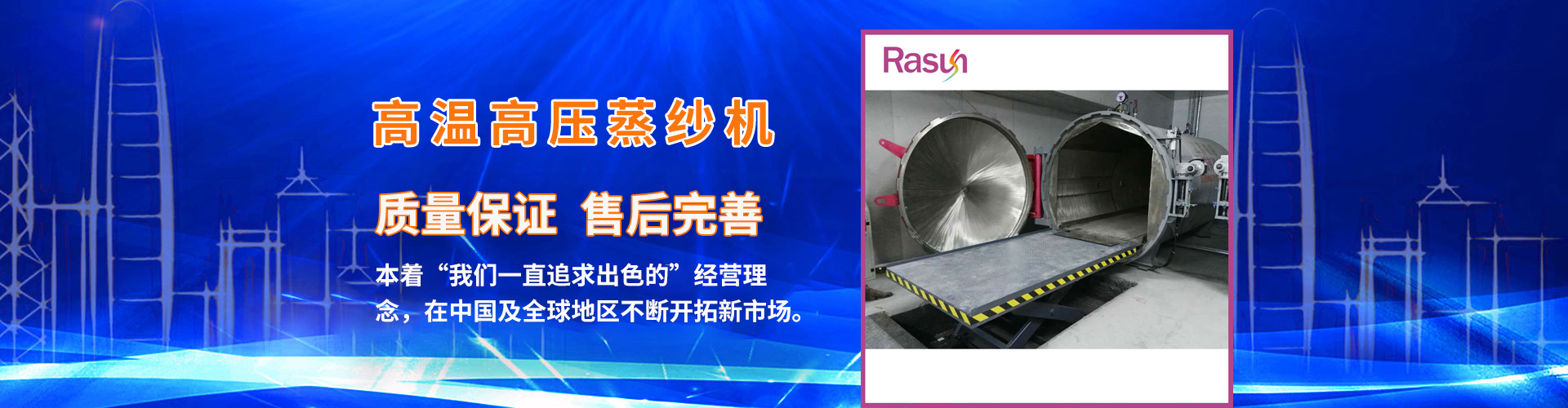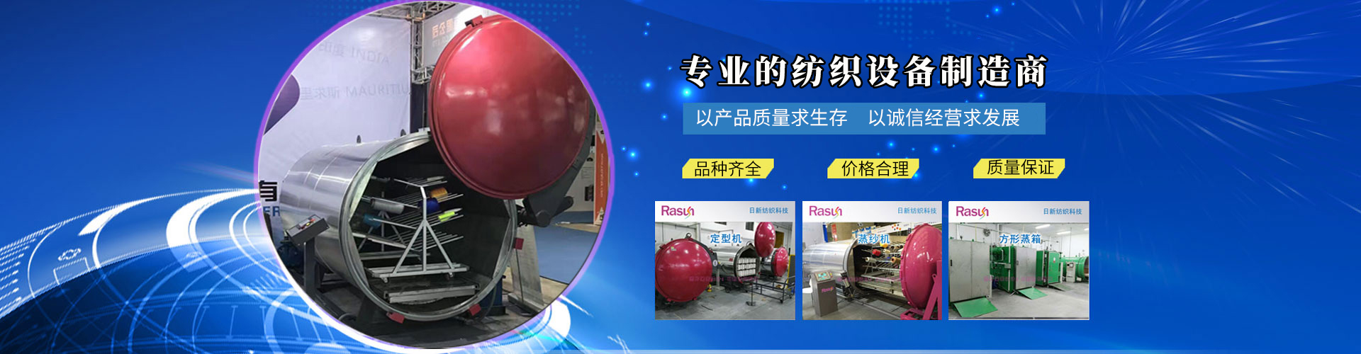 江蘇日新紡織科技有限公司是一家集科研、開發(fā)、生產(chǎn)、銷售、服務(wù)為一體專業(yè)設(shè)計(jì)制造蒸紗機(jī),蒸紗鍋,蒸箱,定型機(jī),襪子定型機(jī),紗線定型機(jī)的的廠家,蒸紗機(jī)生產(chǎn)設(shè)備精良,蒸紗鍋設(shè)計(jì)工藝 ,蒸箱檢測手段齊全,紗線定型機(jī)技術(shù)雄厚,高品質(zhì)的蒸箱,蒸紗鍋,蒸紗機(jī),紗線定型機(jī)產(chǎn)品,在國內(nèi)外享有盛譽(yù)。公司坐落于江蘇省金湖縣建設(shè)西路413號(hào),處于南京、揚(yáng)州、淮安一小時(shí)都市經(jīng)濟(jì)圈。公司本著“誠信之本”的經(jīng)營理念,在中國及全球地區(qū)不斷開拓新市場,熱誠與社會(huì)各界有識(shí)之士合作,構(gòu)成一個(gè)良好的營銷體系。為您提供專業(yè)的一條龍服務(wù)。愿江蘇日新人能感染您,推動(dòng)您,走入永遠(yuǎn)屬于我們的天空中去。 + MORE